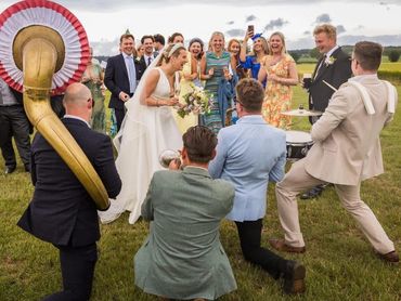 We turn the walk from the ceremony to the wedding drinks into a mini parade, leading your guests with upbeat tunes, dancing, and a whole lot of fun—get ready to march, groove, and celebrate!